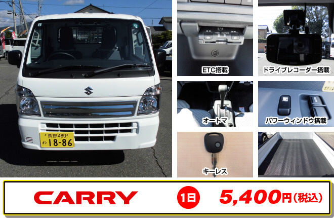 藤屋モータースのレンタカーは、「ランディ」、「N-BOXカスタム」、「エブリイバン」、「キャリィ」の4車種をご用意しております。
